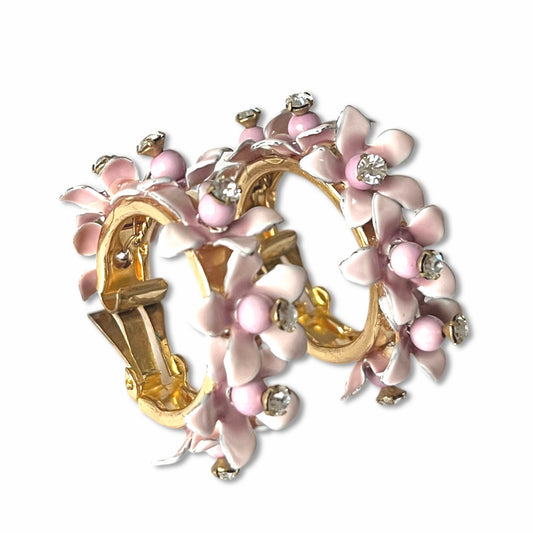 Miriam Haskell ミリアムハスケル ライラックフラワーゴールドフープのイヤリング VJ-9039
