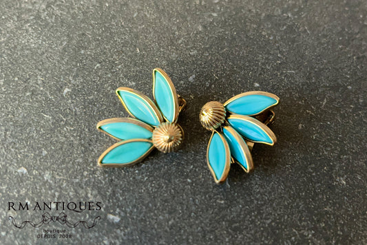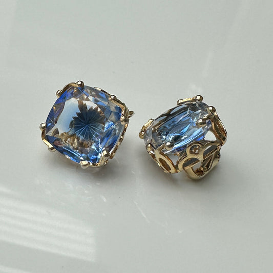 VJ-9079 Emmons "Blue Ice" イヤリング – クラシックなクラウンセッティングデザイン ヴィンテージジュエリー