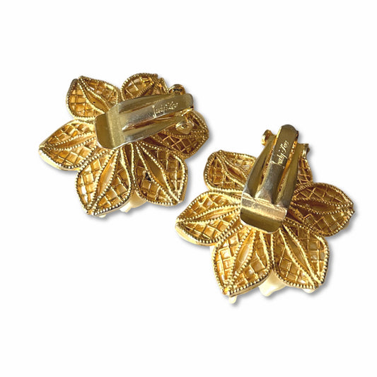 Krementz ラインストーン フラワーイヤリング(14金ゴールドフィルド)