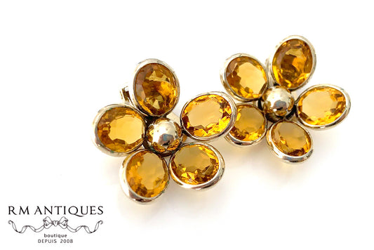 Trifari トパーズガラスのベゼルセッティングイヤリング トリファリ ヴィンテージジュエリー