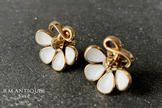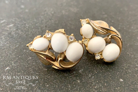 Trifari ホワイトカボションイヤリング トリファリ ヴィンテージジュエリー