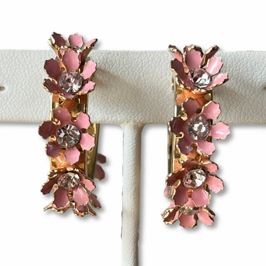 WEISS ピンクラインストーンデイジーイヤリング | ヴィンテージジュエリー