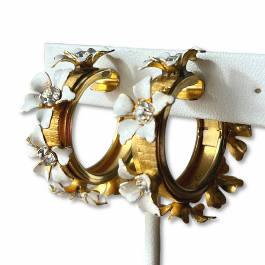 Miriam Haskell ホワイトフラワーゴールドフープのイヤリング | ヴィンテージジュエリー