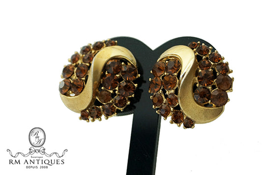 Trifari アンバーラインストーンイヤリング | ヴィンテージジュエリー