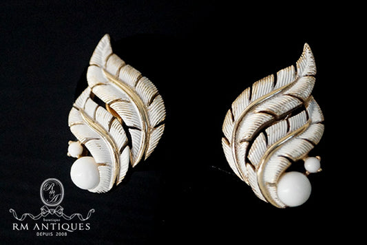 Trifari ホワイトエナメルリーフのイヤリング | ヴィンテージジュエリー
