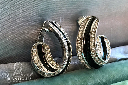 Trifari ブラックエナメルとラインストーンのイヤリング | ヴィンテージジュエリー