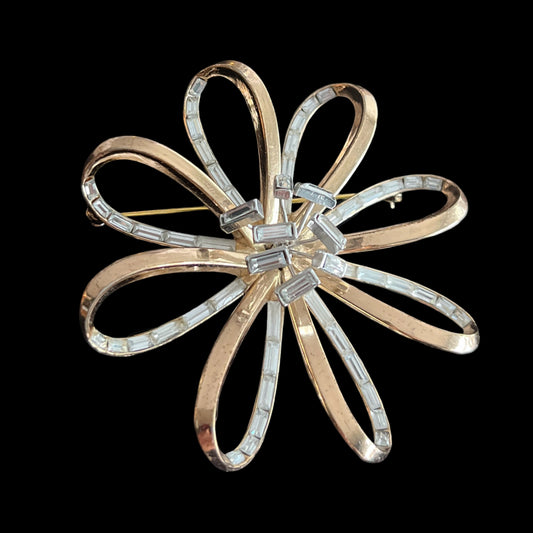 Crown Trifari A Philippe Pat Pend ラインストーンのリボンフラワーブローチ トリファリ