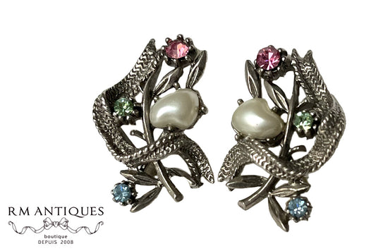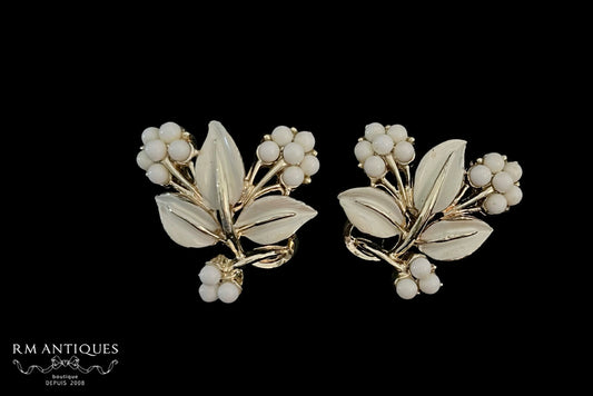 Pegasus Coro ホワイトフラワー&リーフ イヤリング – フラワーと葉っぱデザインのヴィンテージピース