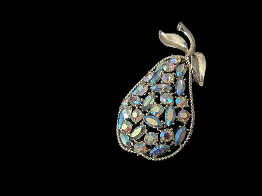 Coro ヴィンテージブローチ 洋梨モチーフ ブルーオーロラ ラインストーン ゴールドトーン 1950年代