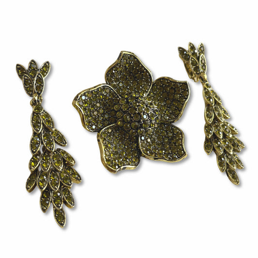 HollyCraft オリーブカラーのお花のブローチとイヤリングセット VJ-9042