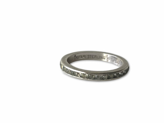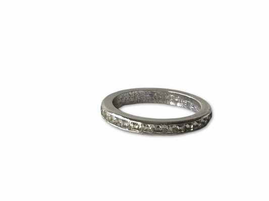 Trifari Early Vintage Eternity Ring | Sterling Silver PAT PEND, Square Baguette Rhinestones | VJ-8928