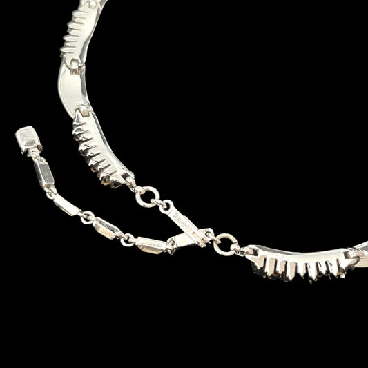 Trifari Asymmetrical Rhinestone Choker Necklace — Alfred Pat Pend, 1950, Silver | VJ-6035