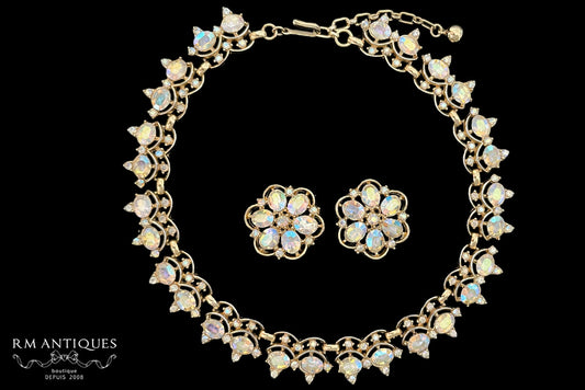 VJ-7949 Trifari Aurora Rhinestone Necklace and Earrings Parure Trifari