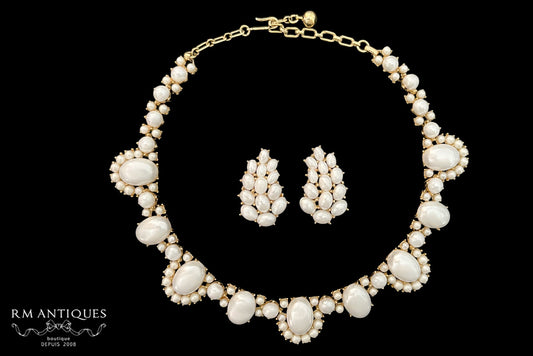 VJ-7950 Trifari Pearl cabochon necklace and earrings Parure Trifari