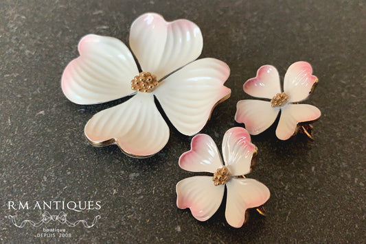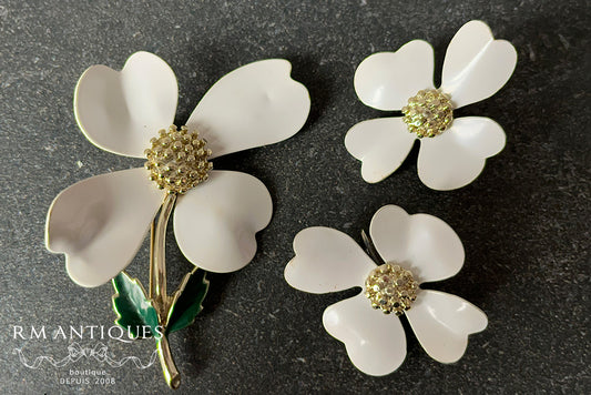 VJ-8562 Sarah Coventry 1969 DOGWOOD dogwood brooch and earrings parure