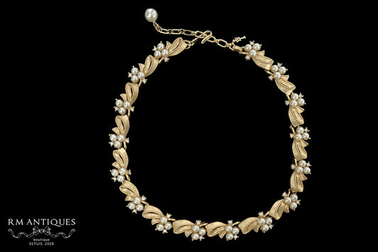 VJ-8827 Trifari Gold ribbon and pearl link necklace Trifari