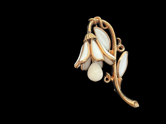 Crown Trifari Milk glass lily of the valley brooch Vintage Jewelry VJ-8939