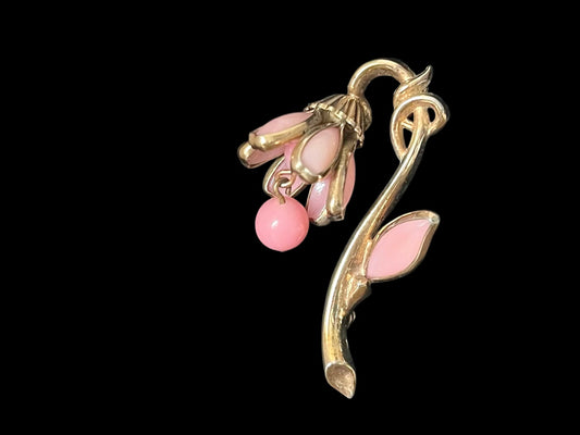 VJ-8940 Crown Trifari Pink milk glass lily of the valley brooch Trifari