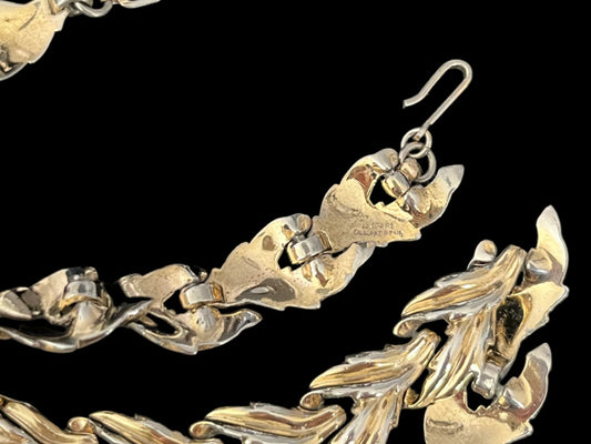 VJ-8931 Trifari Silver Leaf and Rhinestone Necklace