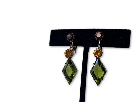 VJ-8954 Hattie Carnegie Peacock Stone Earrings