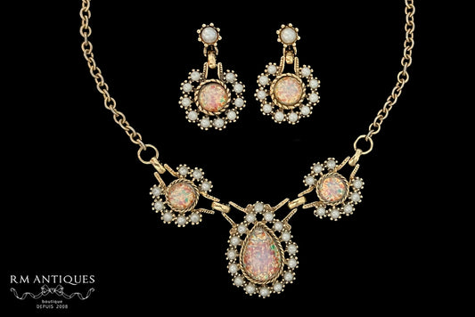 VJ-5859 Sarah Coventry "Empress" 1972 Fire opal style necklace and earrings
