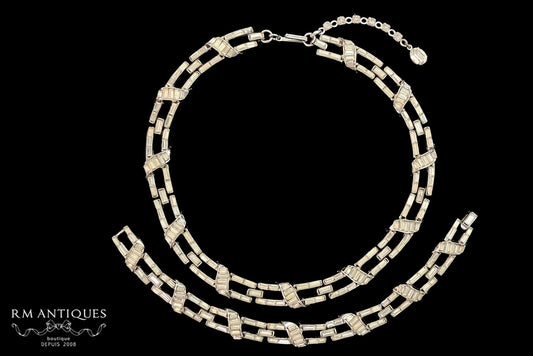 VJ-6780 Trifari Baguette stone bracelet and earrings Parure Trifari