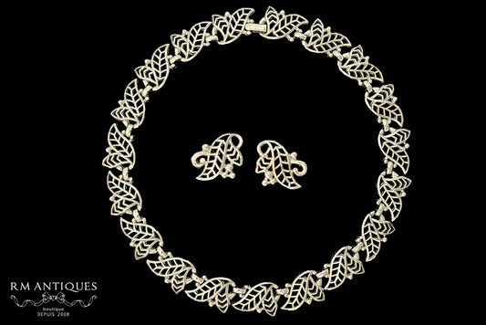 VJ-7419 Trifari pat pend Silver leaf necklace and earrings Parure Trifari