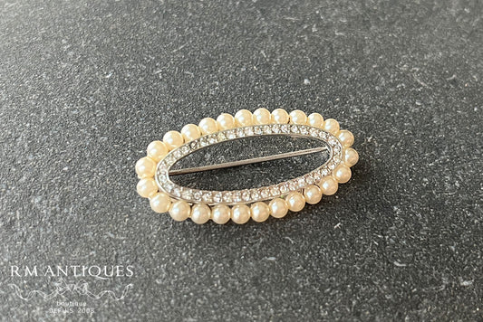 VJ-8729 Crown Trifari Crystal pavé and pearl oval brooch Trifari