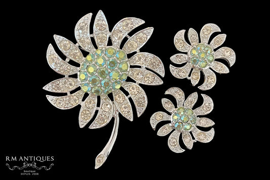 Sarah Coventry 'Mountain Flower' 1968 Aurora Peridot Glass Brooch & Earring Set | Vintage Jewelry VJ-6371