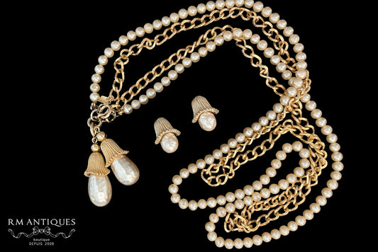 Sarah Coventry "Fashion Parade" 1964 Tassel Pearl Necklace & Earring Set | Vintage Jewelry VJ-7406