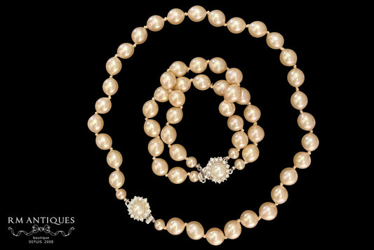 MARVELLA Pearl Double Strand Bracelet & Necklace Set|Vintage Parure VJ-8225