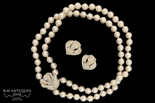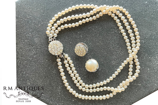 Vendome 2-Strand Pearl Choker & Earrings Set – Vintage Jewelry | VJ-8566