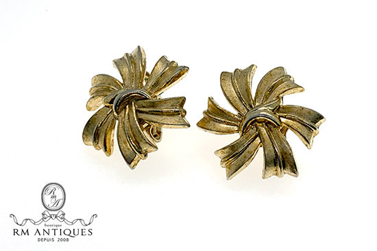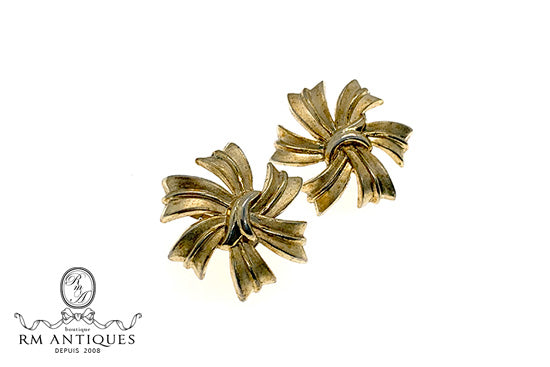 TRIFARIの定番、ゴールドのモチーフイヤリング。大きなリボンデザイン どんなお洋服にも合わせやすく、とても使いやすいイヤリングです。 若干経年がみられます
