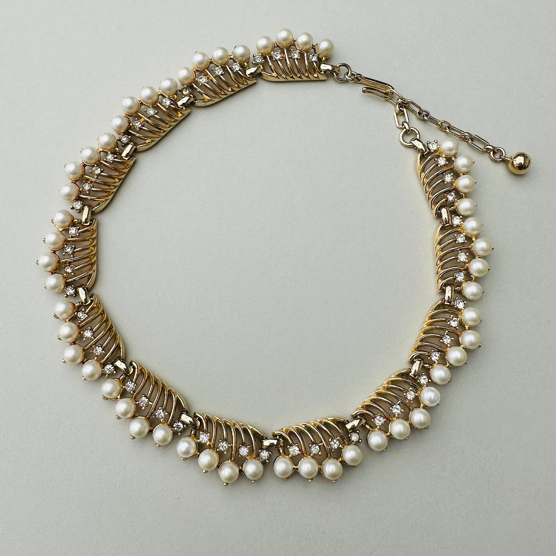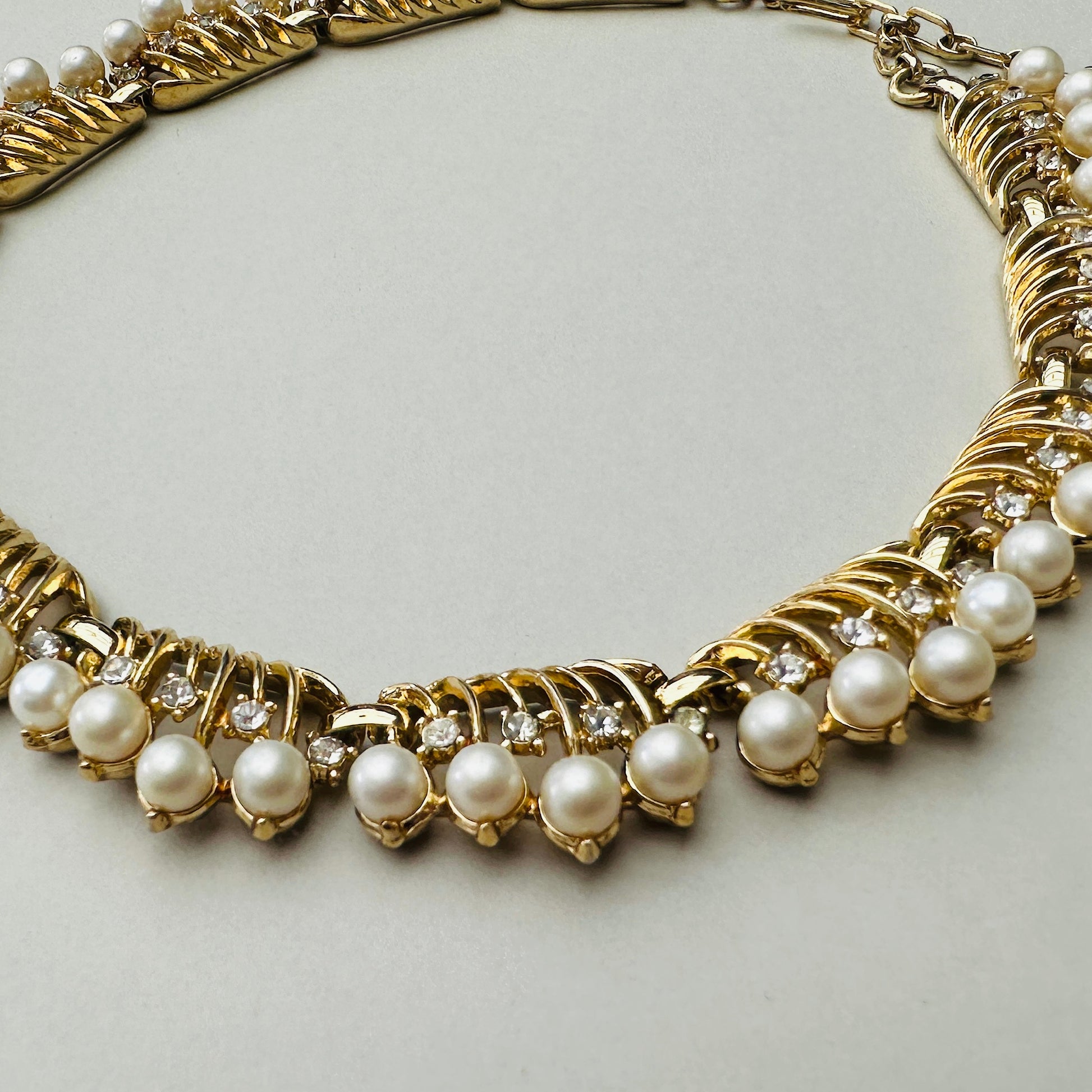 Crown Trifari ヴィンテージパールゴールドネックレス – エレガントなクラシックデザイン ヴィンテージジュエリー VJ-9078